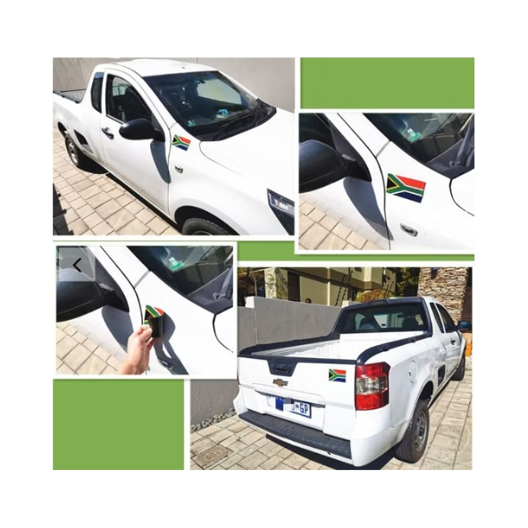 | Souvernir: | South African Flag + Magnetic Decal Sticker Combo, SA Flag + Hook & Loop Patch, SA Flag Stickers Pack, SA Taxi Opener, SA Flag and Vuvuzela Combo |